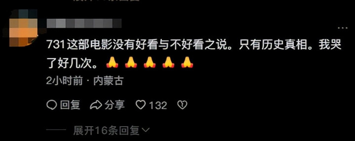 电影《731》今天上映,全程125分钟,我看完了。