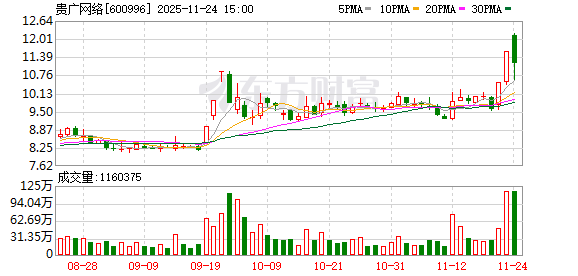贵广网络(维权)(600996)今日下跌3.37%,全天换手率9.31%,成交额12.88亿元,振幅15.76%。龙虎榜数据显示,沪股通净卖出1070.64万元,营业部席位合计净卖出5150.07万元。