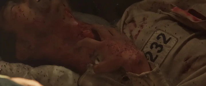 身上冒出出血点,没给打针的镜头,冻伤实验也只是提了一句剥皮,没给特写